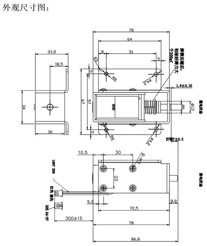 | 電流: | 0.3A | 通電率: | 100%通電 | 彈簧回力: | 吸力: |